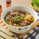 肉多湯濃,饕客最愛(此湯品,為原汁,湯稍微偏油,排骨酥湯有加冬瓜一起偏甜。)有豆芽菜、韭菜、香菜,如有不加請備註!謝謝。 年節菜販休息,菜量不足的地方,會以增加麵量來替代。