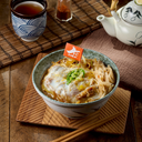 滑嫩雞蛋搭配濃郁醬香的雞肉淋至熱白飯上,經典日式風味,完整呈現。【雞肉產地:美國】