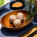 魚肉製的外皮包覆多汁肉餡,吸附著鮮美湯底一口咬下,真是滿足!(此描述僅供參考)
