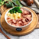 我們雞肉品項都是使用雞腿肉! 雞腿是運動的部位,肌紅蛋白(肉的紅色素)比較多,『肉質會呈現暗紅色,並不是沒熟!』
