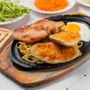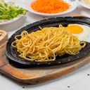 鐵板熱氣巴在麵條與醬汁上,夠味過癮的麵食不容錯過。(此描述僅供參考)