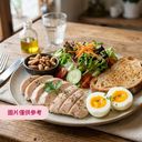 低脂舒肥雞、綜合堅果,無油水煮蛋、烤土司、沙拉
