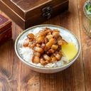 香醇滷肉搭配鮮嫩雞肉,再來口香噴噴的米飯,涮嘴的絕佳組合。(此描述僅供參考)