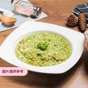 羅勒青醬與鹹香培根的結合,讓人一口接著一口的美味燉飯。(此描述僅供參考)