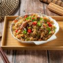 香氣濃郁的櫻花蝦加入米飯大火快炒,獨樹一格的鮮美滋味。(此描述僅供參考)