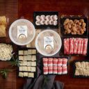 五花去骨鮮肥牛/梅花豬肉(擇一)、梅花豬肉*1、凍豆腐*1、豆皮*1、虎皮豆捲*1、魚餃*1、蛋餃*1、排骨酥*1、烏龍麵*2、沾醬組*2|產地:白湯鍋高湯(豬大骨)-台灣、梅花豬肉-台灣/丹麥/西班牙/加拿大、五花去骨鮮肥牛-美國/澳洲、魚餃&蛋餃(豬肉)-台灣/加拿大、排骨酥(豬肉)-台灣。(依櫃台立牌標示公告為準)