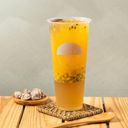 限冷飲 | 選用台灣道地茶葉,入口甘潤的青茶,加上百香果的獨特香氣,搭配晶透的梅香凝凍。 (凝凍系列請先用吸管戳碎再飲用)