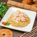 鑊氣十足的麵條搭配鮮甜蝦仁,讓人讚不絕口的經典美食。(此描述僅供參考)