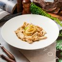 青醬雞肉義大利麵,香濃的青醬搭配嫩滑的雞肉片,麵條上盛滿了淡雅的香草氣息, 一口下去滿滿的大自然芳香!