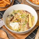 本店所用高湯為大骨和蔬果熬煮,無添加化學味素。 鍋燒裡面有當日採買新鮮蔬菜及豬肉片及一個優選雞蛋(散蛋)。 “很重要沒有火鍋料或加工食材” “很重要沒有火鍋料或加工食材” “很重要沒有火鍋料或加工食材” 本店餐食為當季時令蔬果會依供應狀調整 湯和麵(飯)會分開包裝,如需直接裝,請留言告知,感謝您的選購