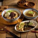 雙醬麵單人套餐 滷味配餐:豆干+甜不辣or豆皮+米血or豬耳朵+海帶 湯品飲料:洛神花茶or蘭芳豆腐湯