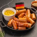 GERMAN SAUSAGE 同時享有黑胡椒香腸、煙燻香腸、青花椒德式香腸 3選2 ,搭配黃芥末醬與酸菜,肉味鮮香。青花椒德式香腸:精選台灣豬前腿肉及獨門調料,呈現青花椒微帶麻感的香氣,再以德國櫸木煙燻製成,運用低溫真空工藝搭配漸進式升溫熟化技術,鮮嫩Q彈(含豬肉成份)