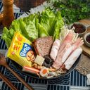 優惠套餐無法指定或更換品項,短缺將更換相同價位商品。內含:主食、季節性綠色時蔬、大黑豆干、精選菇類、精緻火鍋料、豬肉片、豆芽菜。一份套餐只能選一種配料,、辣度及做法。圖片僅供參考。