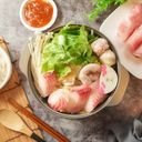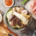 濃郁沙茶高湯煮進新鮮豬肉中,搭配豐富火鍋料一同享用,超滿足!(此描述僅供參考)