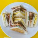 內含:漢堡肉、火腿、蛋 /醬料:美乃滋、蕃茄醬 / 小黃瓜、洋蔥