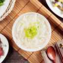 扁條狀的稻米製品,稍有厚度帶嚼勁,淋上蔥酥肉燥香噴噴