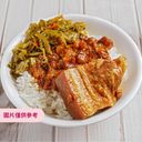 淋上滷汁更下飯,滷五花肉鋪在熱白飯上,肥瘦相間