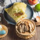 使用1855安格斯黑牛,利用舒肥方式將肉的鮮甜緊緊鎖住,裹上醬與香料,把外圍烤的焦香,配上自製的花生千島醬,有種花生牛肉堡的即視感。 餅皮、薄脆、高麗菜絲、爐烤舒肥牛肉、特製醬汁(堅果過敏勿食) L適合當點心,XL正常煎餅果子份量