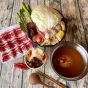 每次訂小鍋爸都像在開盲盒,菜盤種類都有不同驚喜,絲瓜水蓮南瓜高麗菜秋葵綜合菇皇帝豆白綠花椰木耳青江菜菠菜 ,火鍋料有時也會吃到較高價位的,很開心。
