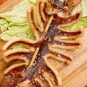 彈牙柔軟的口感,炭烤後塗上烤肉醬,鹹香滋味就是讚!(此描述僅供參考)