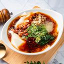 採用新鮮雞肉煮熟切厚片涼拌,佐料豐富,集麻辣鮮香嫩爽口,因為有很多花椒,吃了會麻到嘴巴癱瘓不由自主流口水