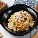 香氣濃郁的櫻花蝦加入米飯大火快炒,獨樹一格的鮮美滋味。(此描述僅供參考)