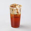 伯爵茶獨有的佛手柑香氣,與濃郁奶香交織成平衡基底,鹽味焦糖輕輕點亮甜感,使香氣更顯立體而不膩,風味成熟而優雅。(總熱量(最高)209Kcal總糖量(最高)35g咖啡因含量165mg)。