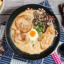 內含叉燒、溏心蛋、兩份配料。湯頭爲本土豚骨與蔬果高湯熬煮,搭配和風醬油,不含人工豚骨粉與味精,風味鮮美自然。 肉品產地:台灣