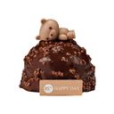 蛋奶素|超萌的熊熊趴在蛋糕上好療癒啊!巧克力淋面使用比利時Belcolade黑巧克力粒及牛奶巧克力粒,完美比例絕佳風味,搭配巧克力蛋糕及巧克力餡,豐富味蕾饗宴。