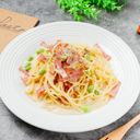 含奶油白醬、毛豆及煙燻培根。肉品產地:國產肉