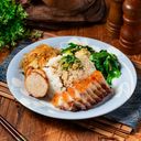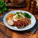 將燒鴨切片或切塊後,搭配白飯香氣撲鼻,每一口都帶來幸福感。(此描述僅供參考)