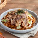 【每日限量供應】 含當日新鮮蔬菜:高麗菜、洋蔥, 日式炒麵搭配濃郁花生醬及牛五花,熊月獨家新風味。