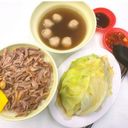 1號餐 鴨肉飯【大】、高麗菜、當歸鴨丸湯