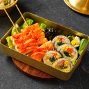主餐為金啵火腿條並搭配五樣精選蔬食, 另附一份金啵特調辣醬供您依喜好可自行調味,拌出美味的韓式拌飯。