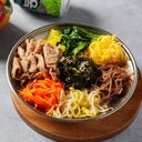 主餐為使用韓國進口秘醬製成的醬燒豬肉片並搭配五樣精選蔬食, 另附一份金啵特調辣醬供您依喜好可自行調味,拌出美味的韓式拌飯。