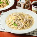濃郁的奶油醬配上鮮嫩雞肉與麵條,奶油香氣撲鼻而來!(此描述僅供參考)