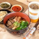 牛肉來源:美國|豬肉來源:台灣|原汁牛肉麵+紅燒排骨飯+45元小菜x2份+中杯飲料x2杯+袋