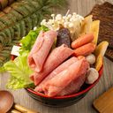 含湯頭【1份】、豬肉、貢丸、配菜【5樣】、主食【1份】