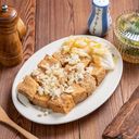 金黃酥脆的乾式素食臭豆腐,表層撒上一層研磨堅果碎,釋放出淡雅堅果香氣,點綴芝麻微微香氣,每一口帶來香脆、濃郁與回甘的極致風味。