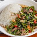 嚴選新鮮雞腿肉,搭配香甜米飯,飽足感十足!(此描述僅供參考)