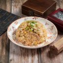 以大火拌炒米飯,搭配肉絲與蛋香氣,炒飯首選。(此描述僅供參考)
