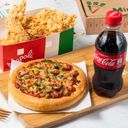 小披薩(約9吋)+6塊炸雞+可口可樂1250ml*1瓶及袋。【恕不挑選雞肉部位】