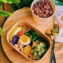 舒肥雞肉.特製溏心蛋.小農時蔬六~七樣菜 搭配健康紫米飯