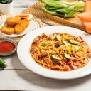 酸甜紅義大利麵、炸物