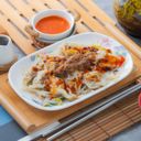 特製香辣醬汁與抄手拌在一起,一場視覺與味覺的饗宴。(此描述僅供參考)