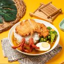 有著咖哩風味的豬排飯,感受口中交織著美味的饗宴。(此描述僅供參考)