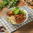 嚴選五花肉塊經多道去油工序,長時燉煮至皮Q肉嫩且油脂入口即化。(此描述僅供參考)