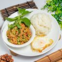 新鮮豬絞肉拌炒泰式調味,是香辣開胃的料理。(此描述僅供參考)