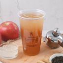 總糖量72.5公克.總熱量322.7大卡|咖啡因59.5mg|茶葉產地: 1.斯里蘭卡2.斯里蘭卡、印度、印尼|【冰飲】蘋果果露加上新鮮檸檬汁,搭配嚼勁十足的寒天晶球,呈現蘋果甜味中略帶微酸的絕佳口感。