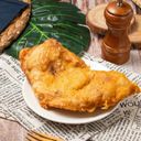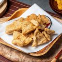 去骨雞肉塊經多種香料醃漬,金黃酥脆且方便食用散發經典鹹香。(此描述僅供參考)
